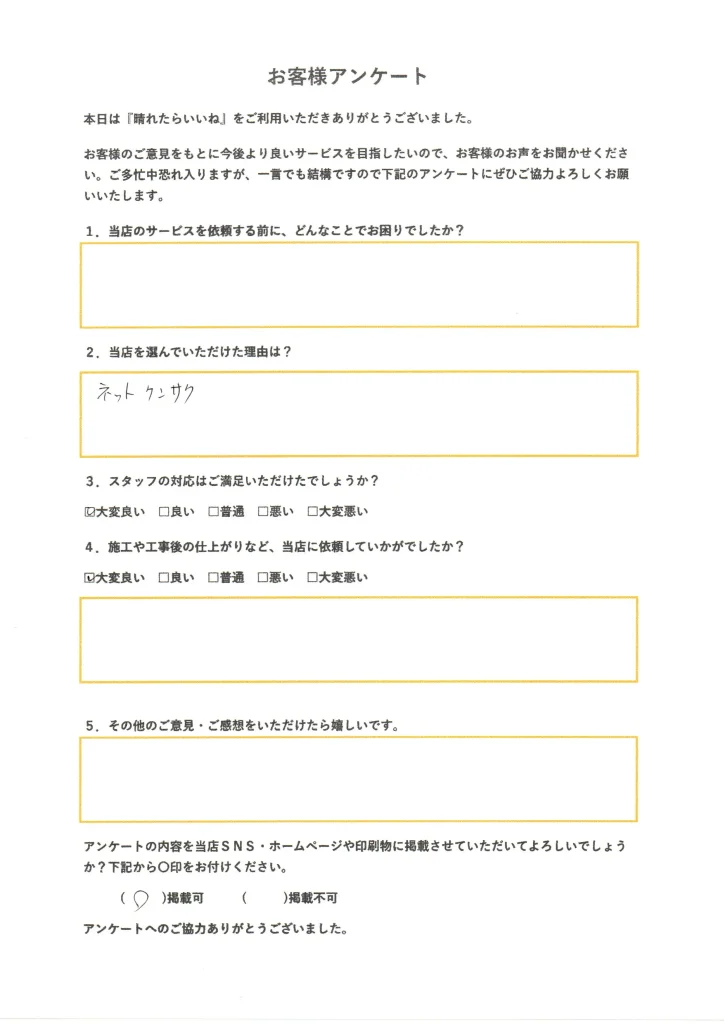 「見積どおりに行い、追加料金も発生せずに良心的にていねいにやって下さって感謝しています。」